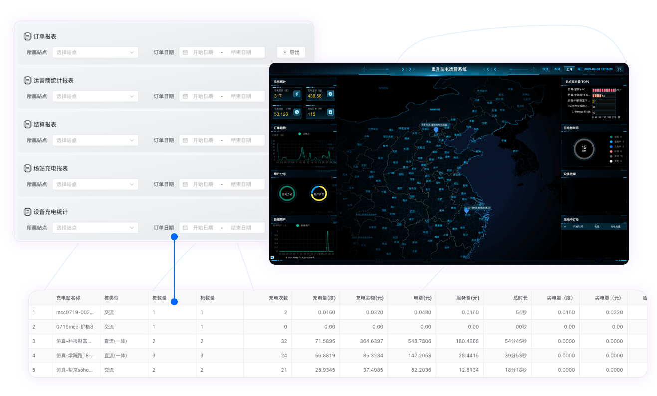 提供完整的订单/报表功能,金额直入业主账户,支持实时分账和加盟模式。